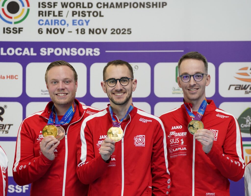 Bei den Männern sicherten sich Pascal Bachmann, Gilles Dufaux und Sandro Greuter in der Teamwertung des 300m-Standardgewehrs (3×20) den ersten Platz.